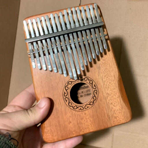 A Kalimba is a type of lamellophone that makes sounds by plucking thin metal or wooden tines mounted on a resonating body. It is also called a thumb piano. I purchased it because of its music box sound. I was debating purchasing a music box kit that let me punch holes in a strip of paper and use a hand crank to pull it through. I then discovered the Kalimba in my research and decided it would be far better for experimenting with sounds and portable.