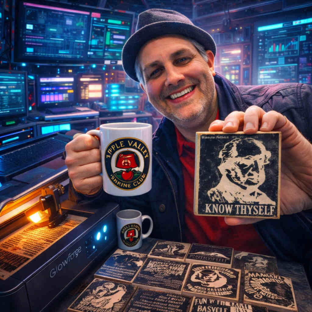 So while I’m standing in the Makerspace waiting on lasers and heat cycles, I’m not just making objects. I’m deciding which historical claims deserve new life. Which phrases deserve bold ink again. Which “modern miracles” should be reframed for contemporary amusement.